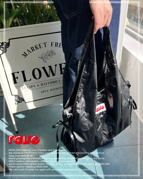 럽레리 4 포켓 리본 숄더 보부백 (black)