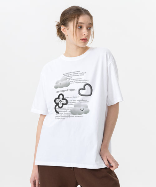 모노 3D 클라우드 프린트 오버핏 반팔티 화이트
