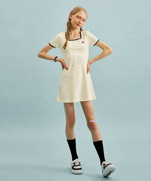 스몰 체리 스퀘어넥 드레스 [라이트 옐로우]