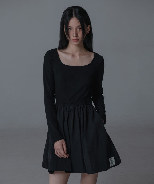 스퀘어넥 슬림 셔링 원피스 (블랙)
