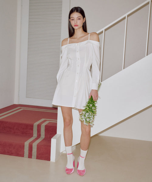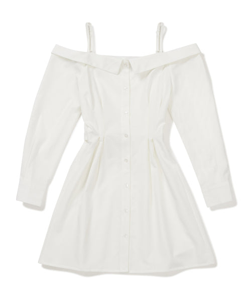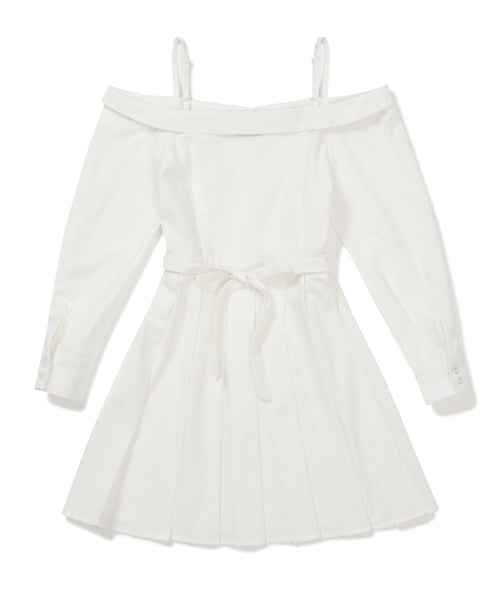 오프숄더 하프 플리츠 셔츠 원피스 [WHTIE]