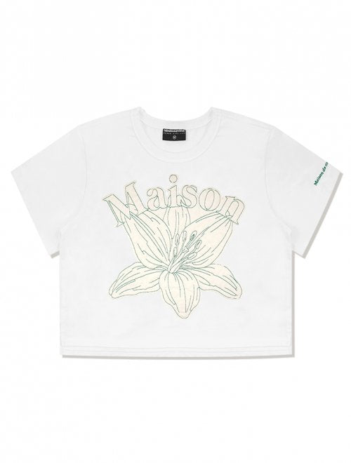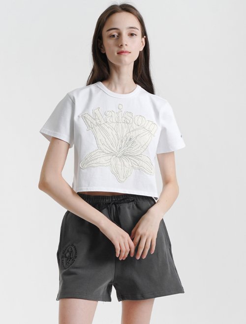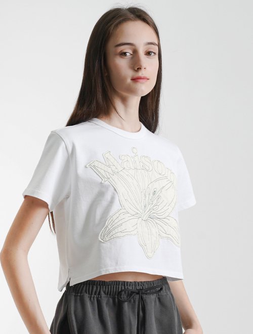 우먼즈 르 리스 자수 싱글 크롭티 화이트크림(FCC2TS429W)