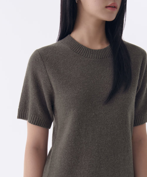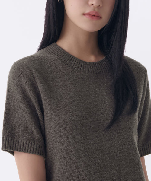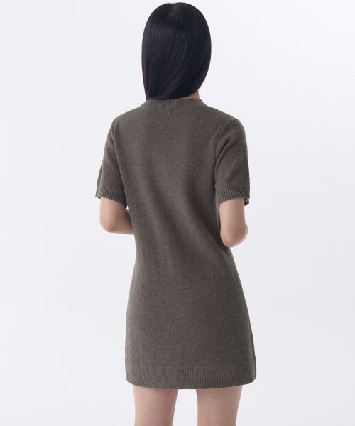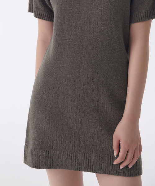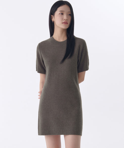 우먼즈 크루 넥 니트 미니 드레스 [카키 브라운]