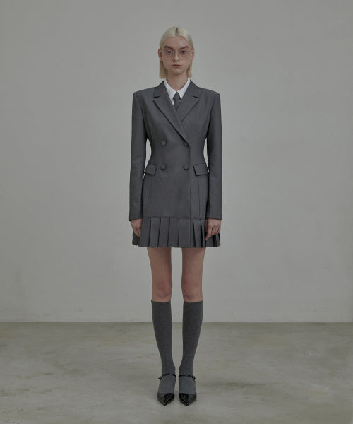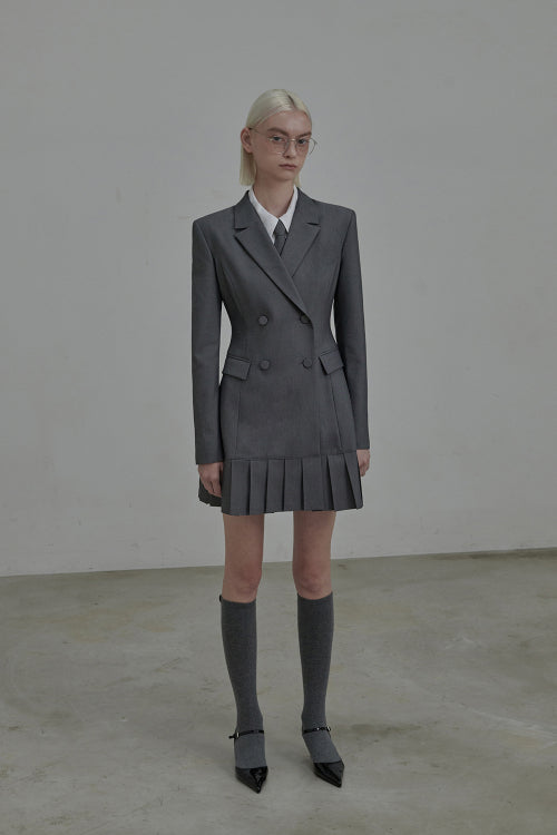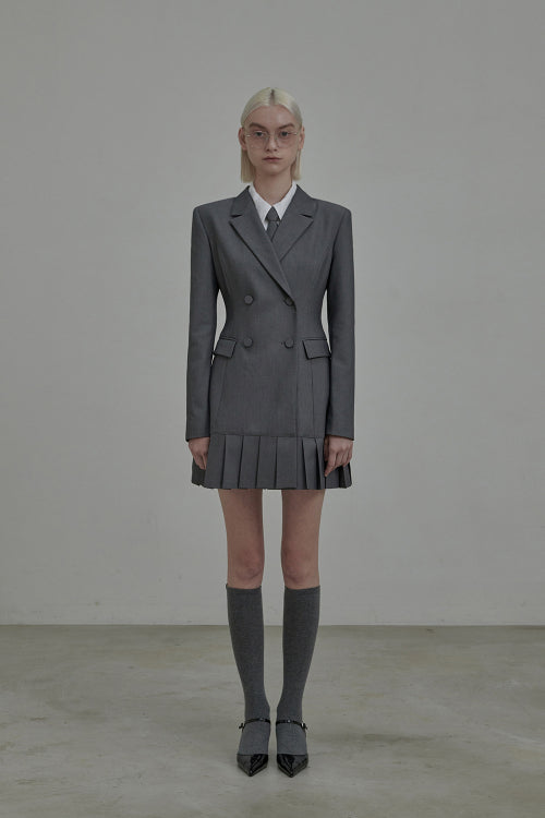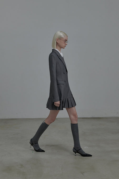 젠 플리티드 수트 자켓 드레스-그레이