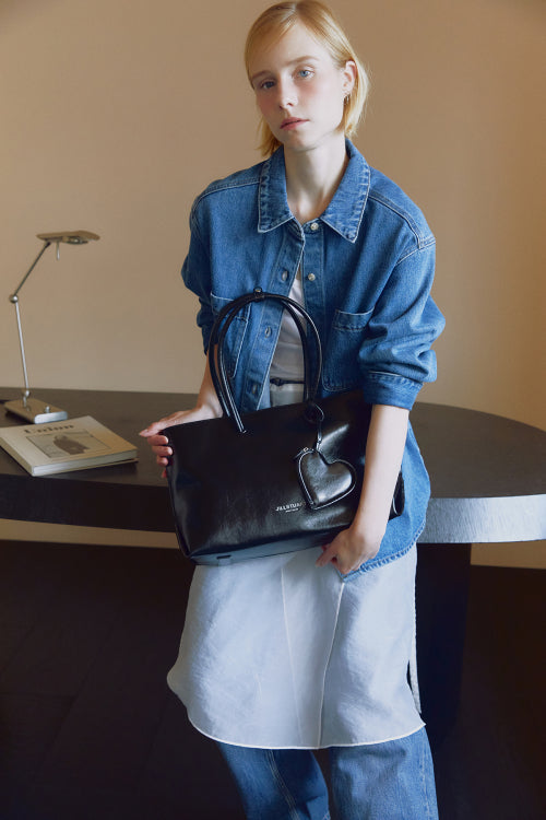 [젤리백] 블랙 글로시 레더 숄더 및 크로스백 (15인치 노트북 수납)