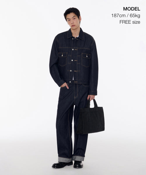 헤비 캔버스 스퀘어 토트 백 [블랙]