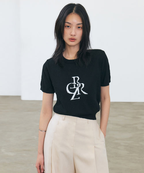 Buckle Symbol Logo Short Sleeve Knit_BLACK