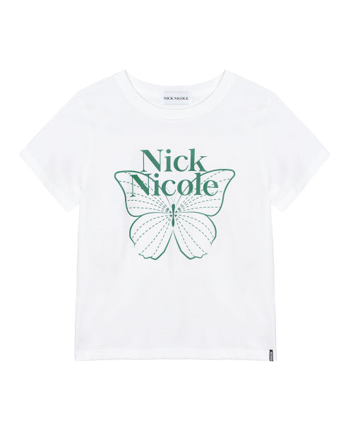 BUTTERFLY NICOLE LABEL SLIM TOP_WHITE GREEN