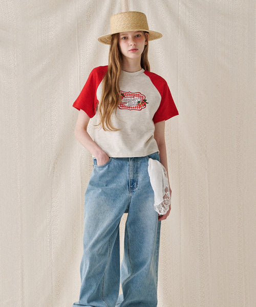 RASPBERRY JAM RAGLAN CROP T SHIRT RED